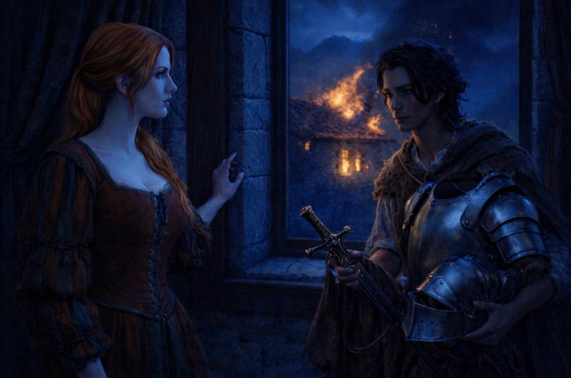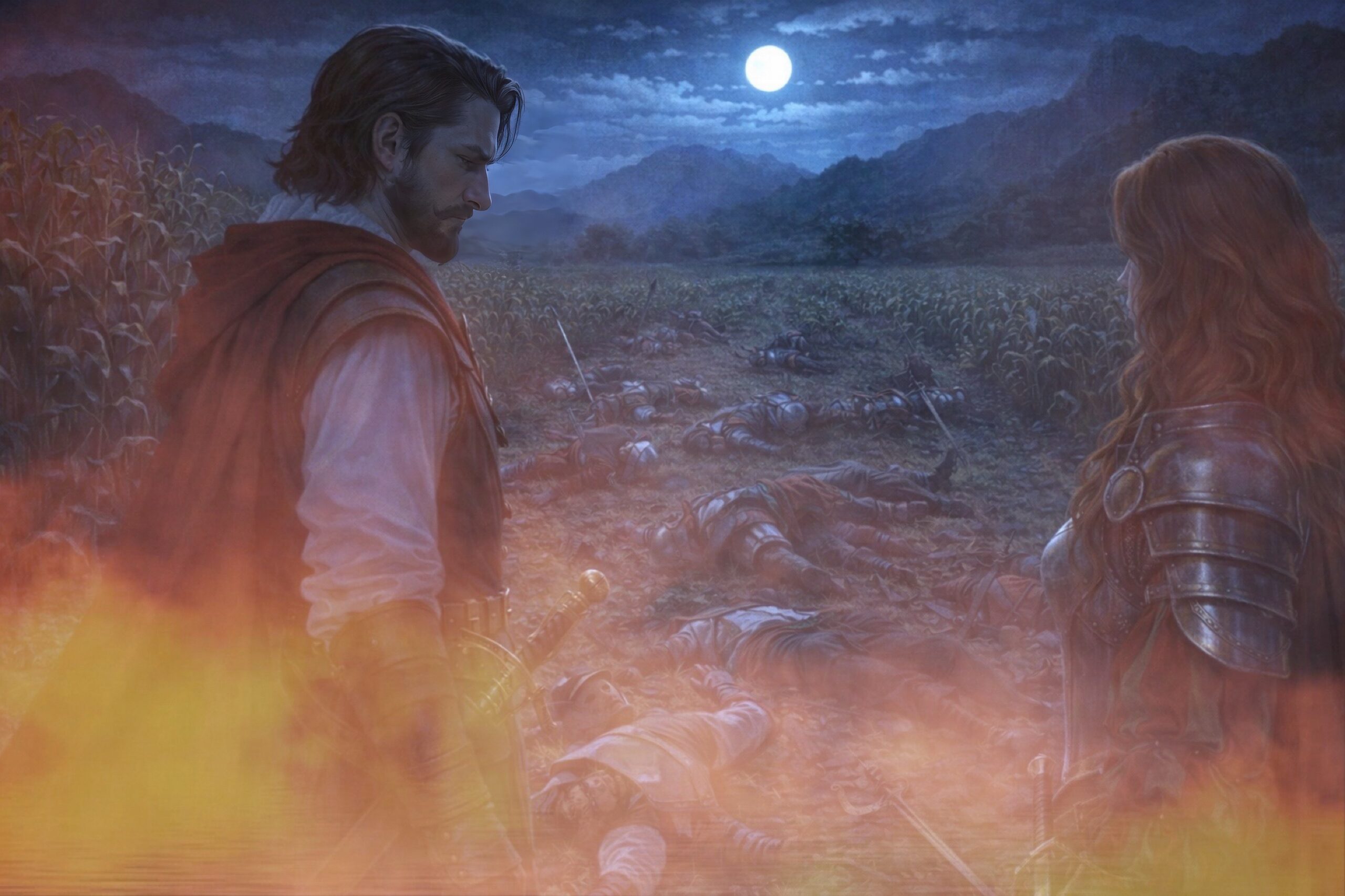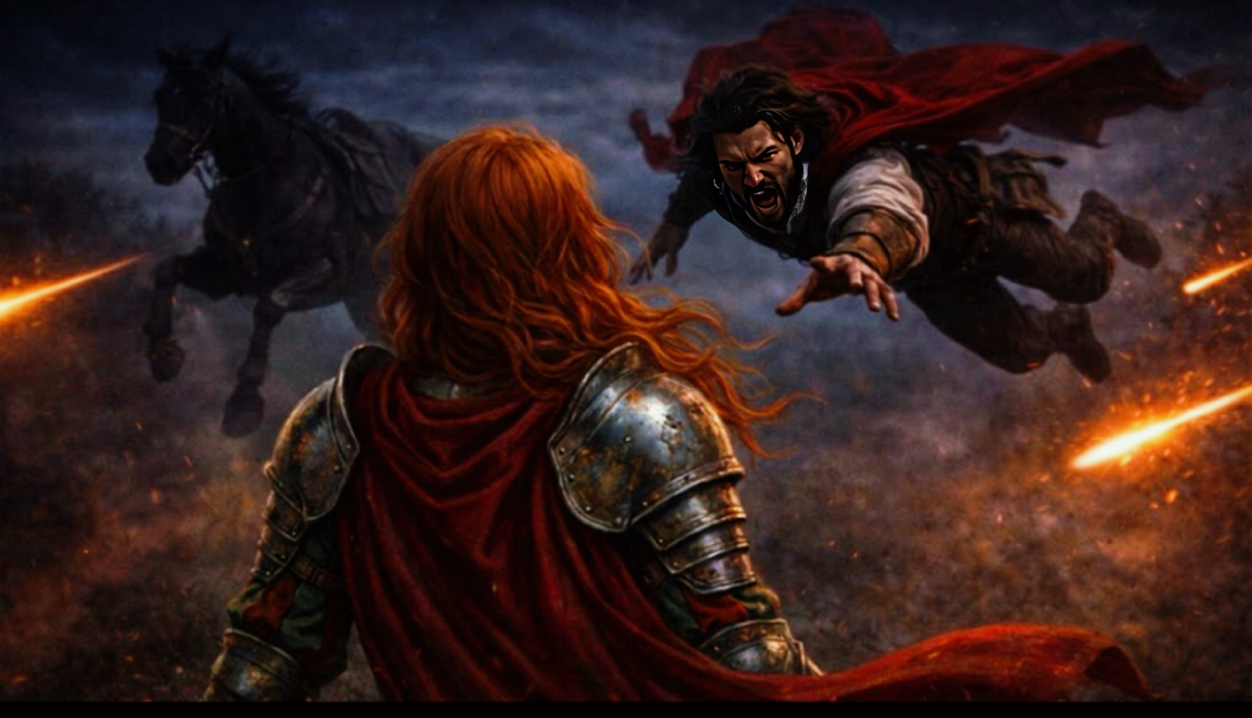 炎に照らされ赤い髪が燃え盛るように輝き