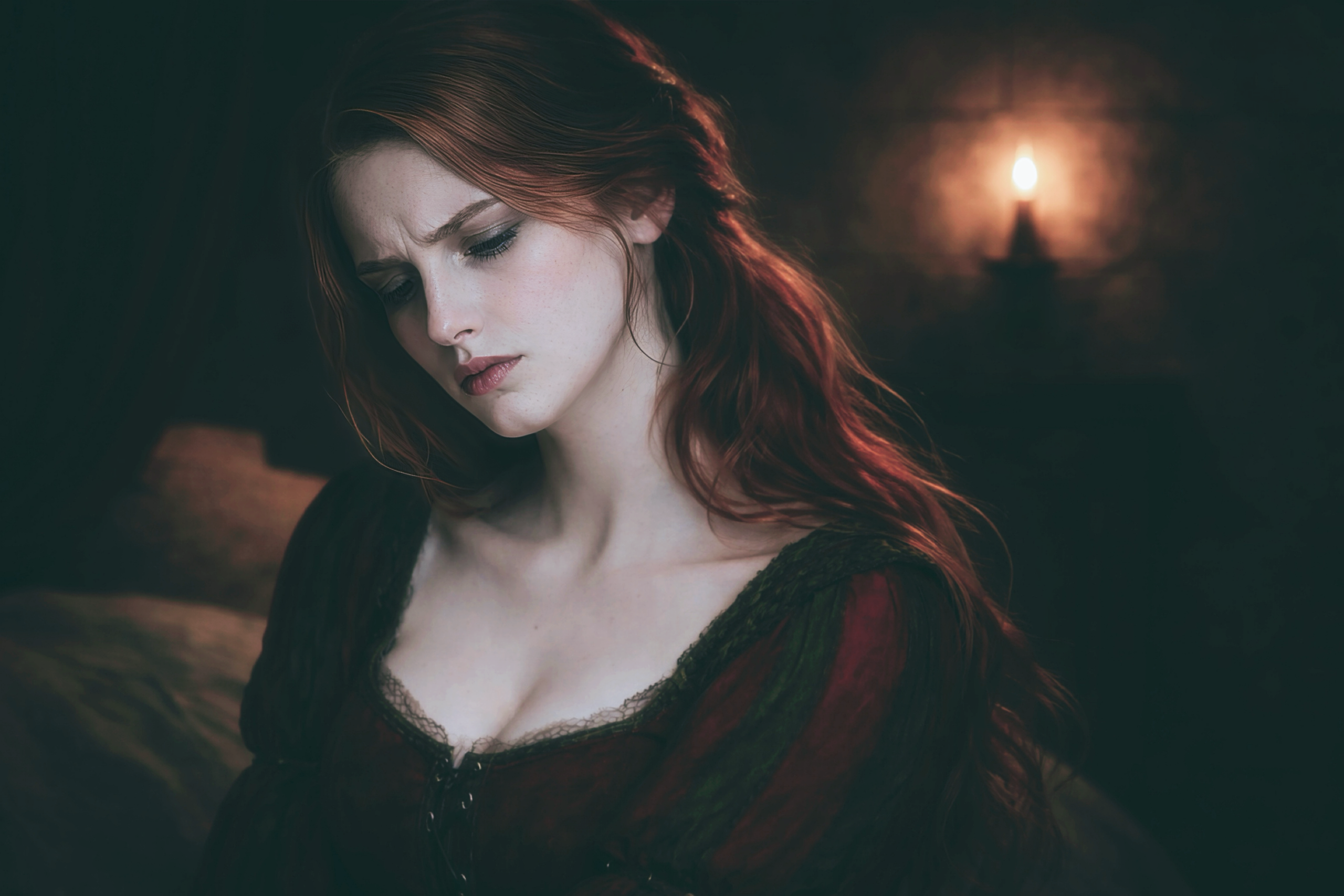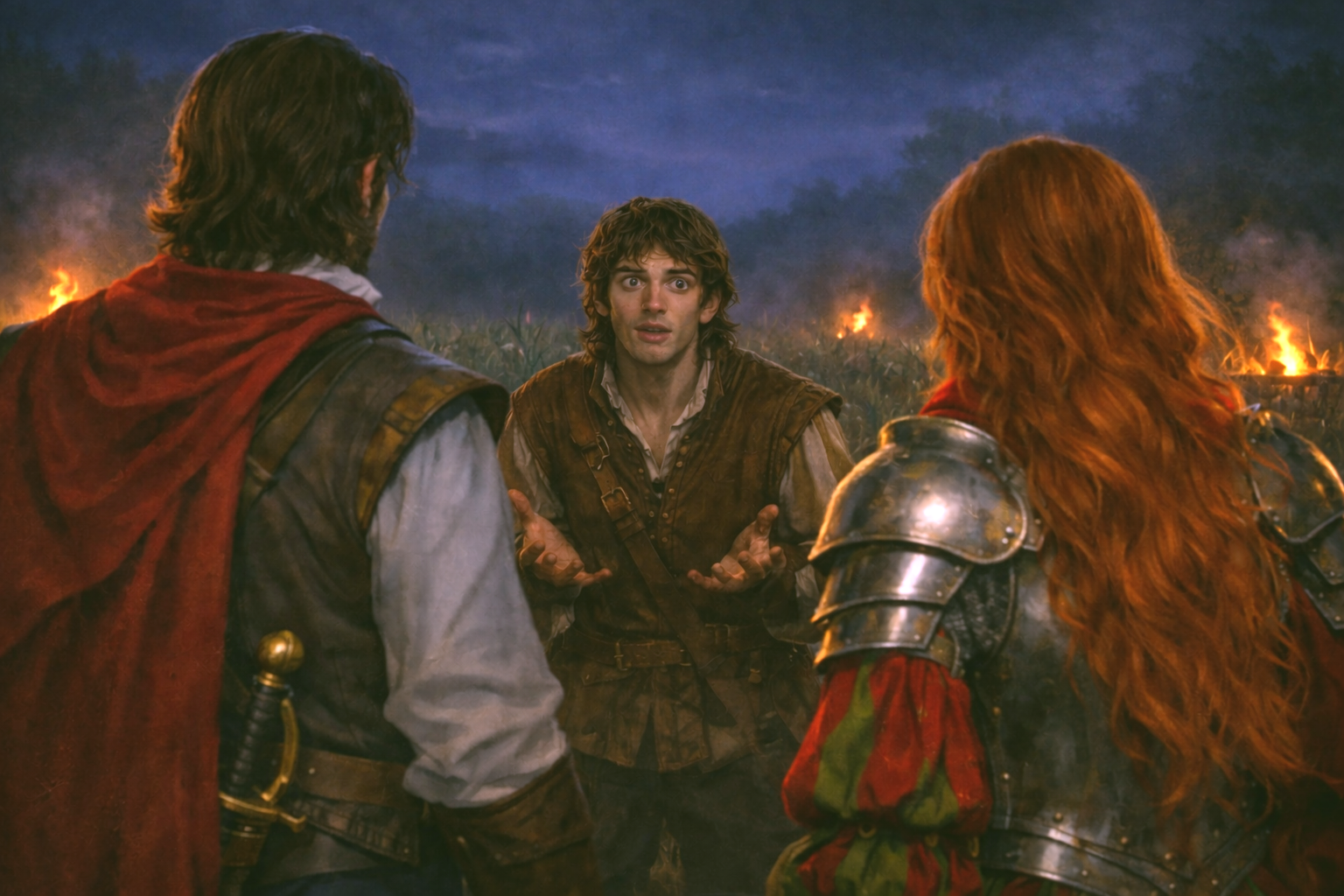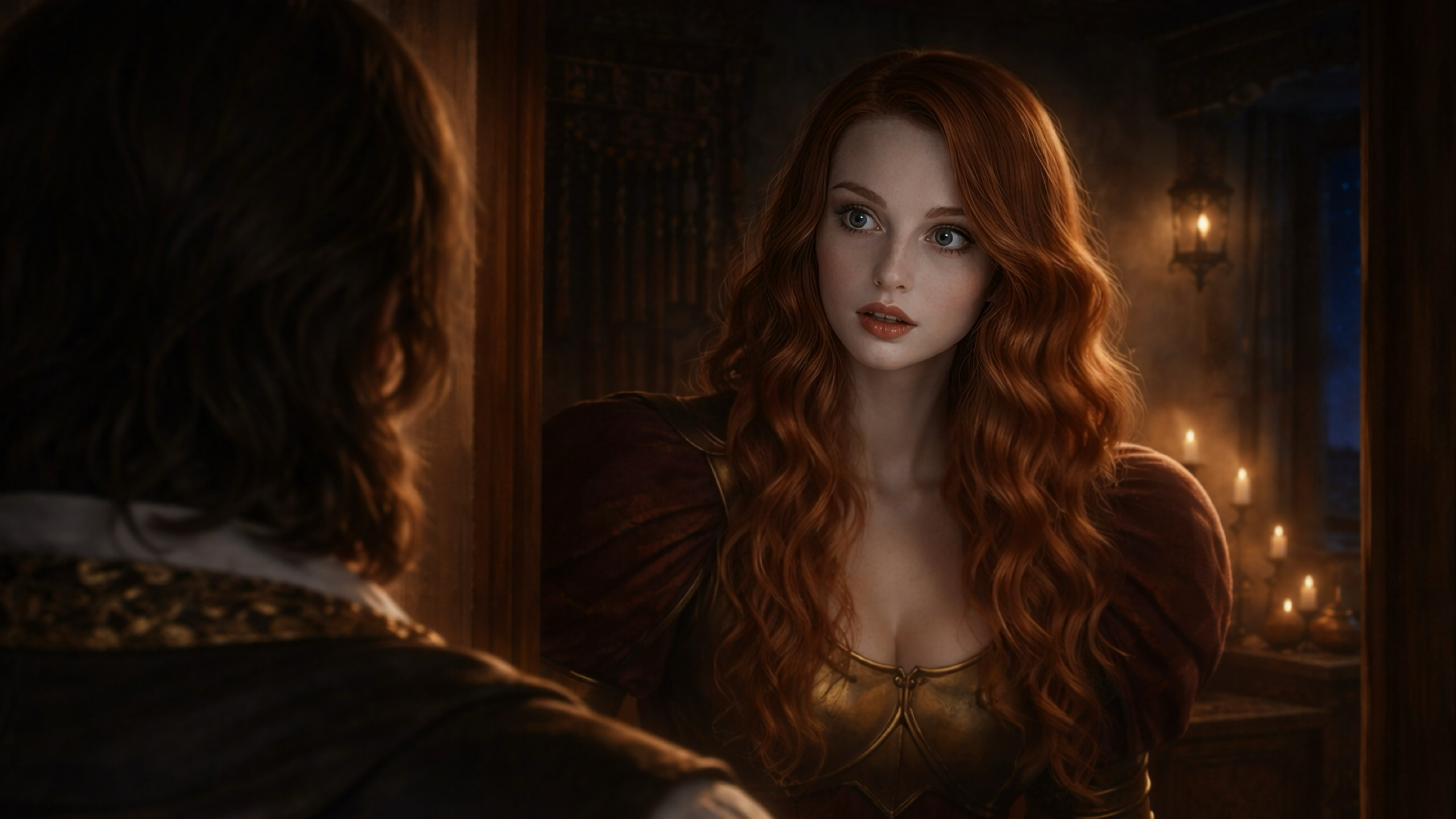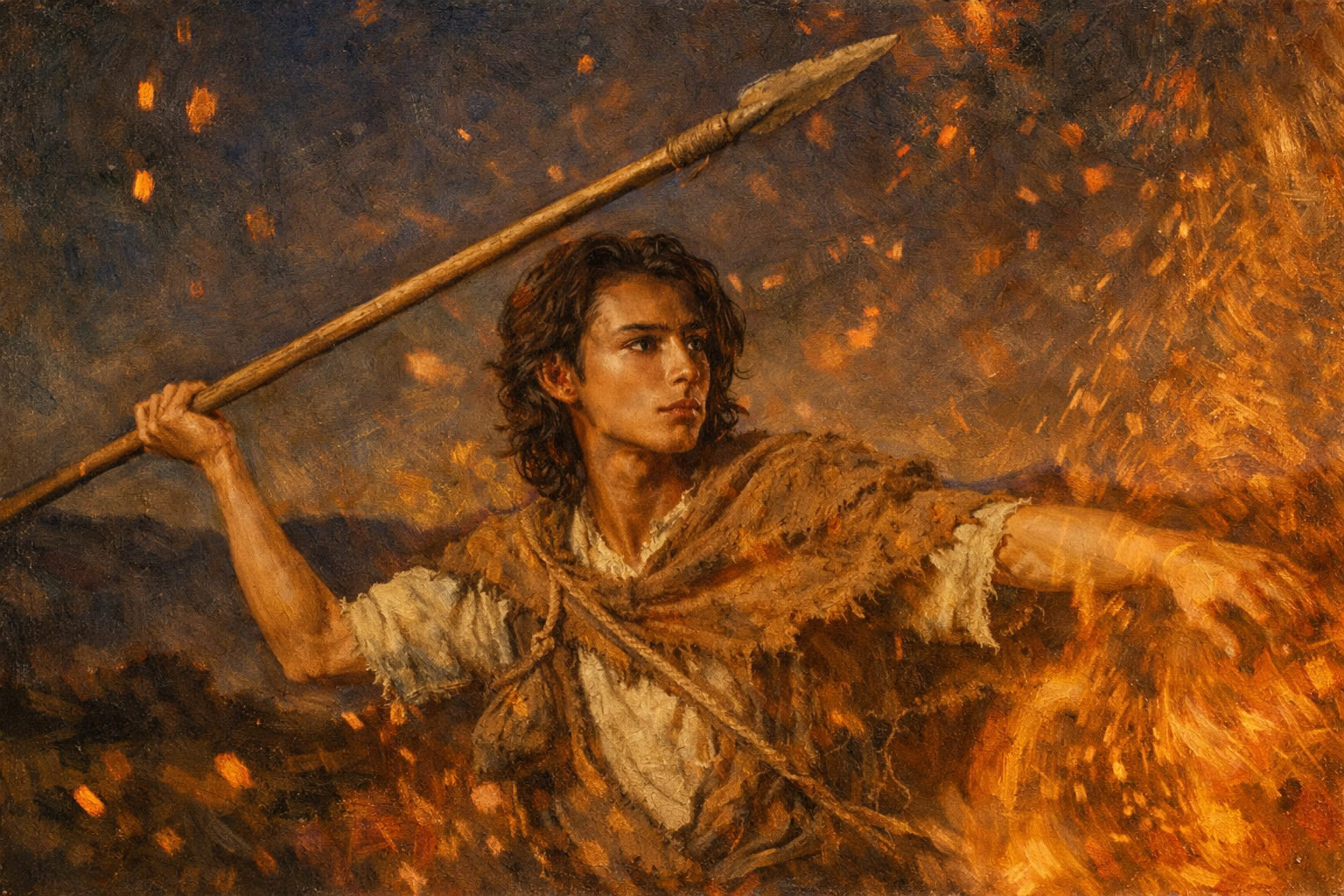 炎に照らされ赤い髪が燃え盛るように輝き