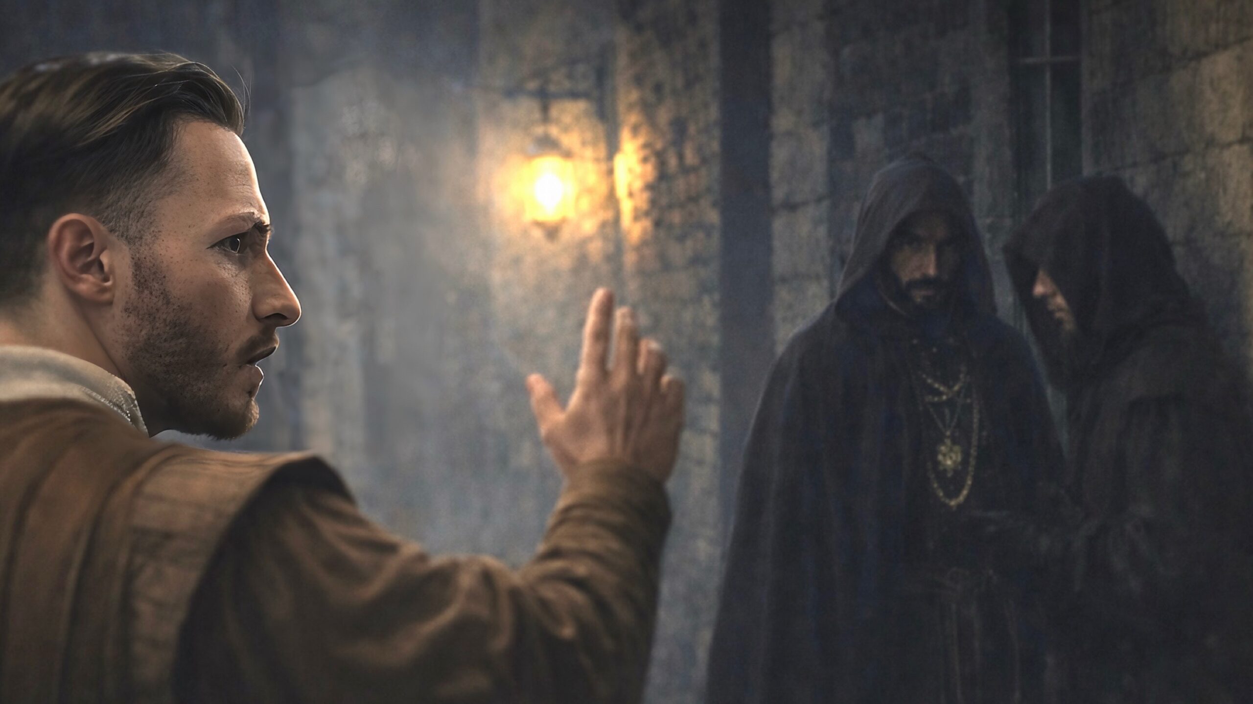 キロガが松明を掲げ、イネスの部屋に入ってきた。
