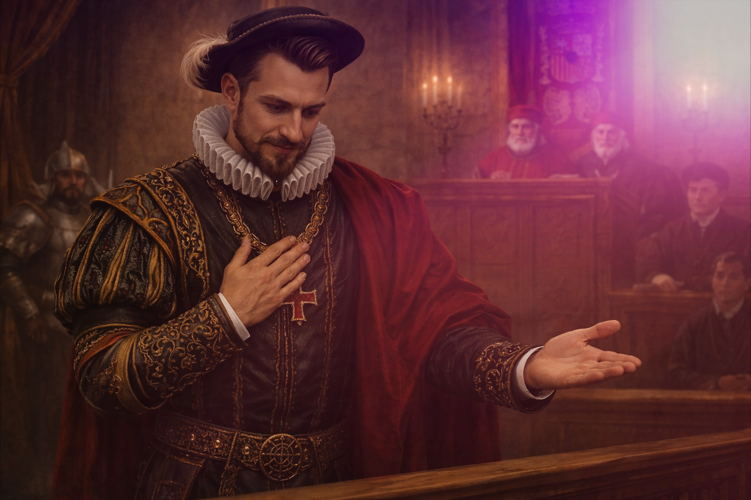 裁判官「ペドロ・デ・バルディビア発言を赦す。」